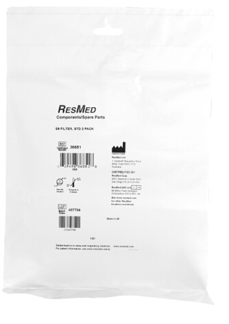 瑞思迈(Resmed)呼吸机S9呼吸器S8原装进口散装滤膜2片装过滤棉海绵仪器通用 S9原装滤膜2片【适用于S9 系列呼吸机】