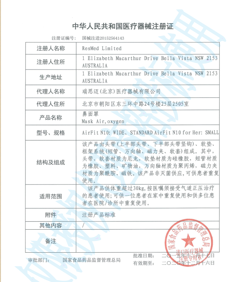 • 产品名称:瑞思迈(Resmed) 呼吸机面罩AirFit N10鼻罩式面罩带头带 瑞思迈呼吸机通用 N10 M码 标准型