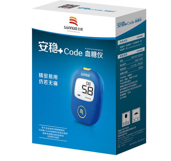 • 产品名称:三诺安稳+code升级血糖仪家用 测血糖仪器家用型测试仪 50支瓶装套装(含仪器试纸采血针采血笔)