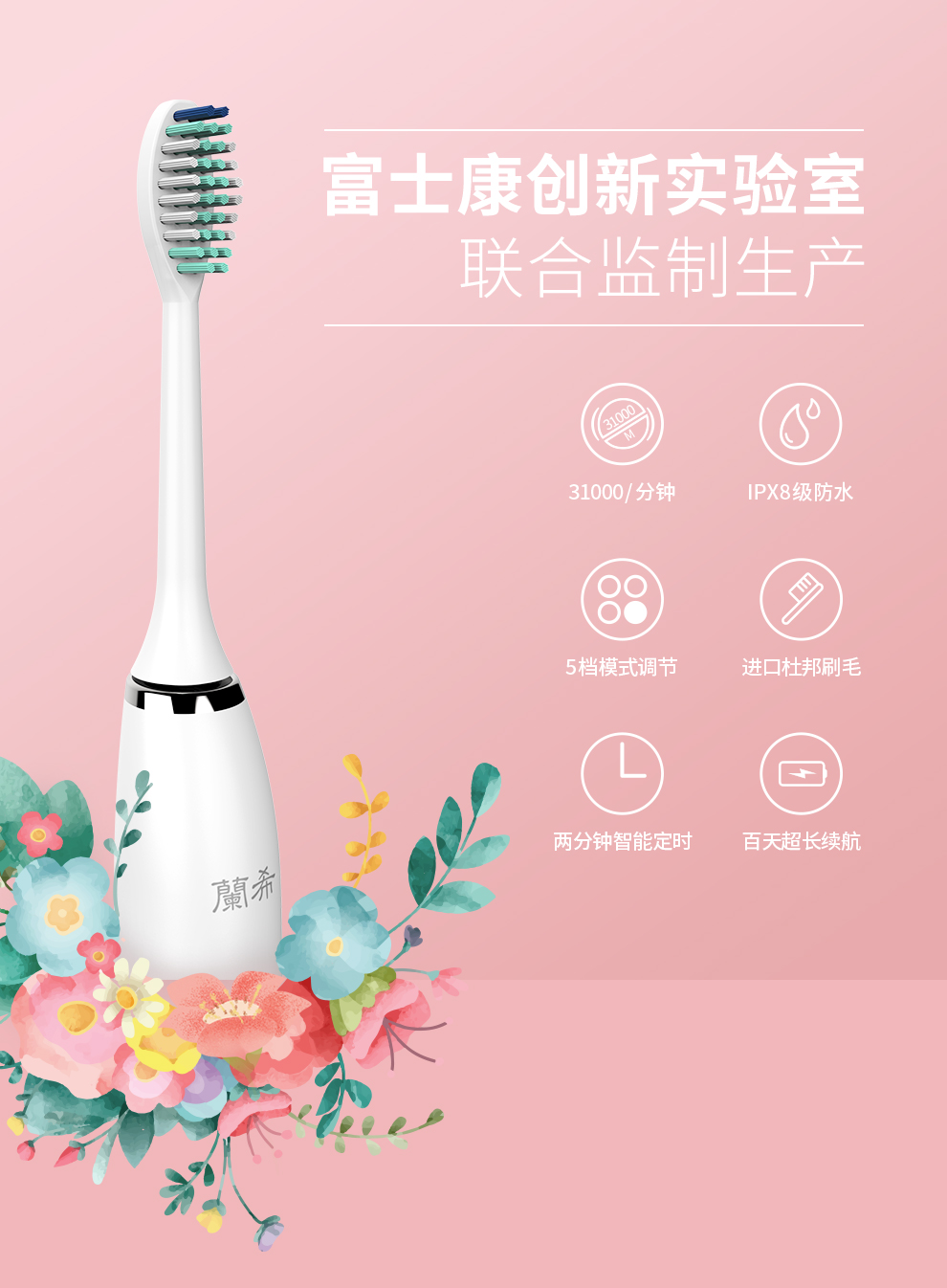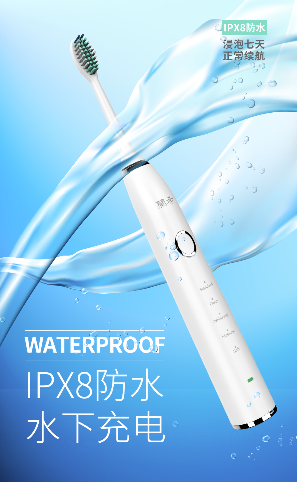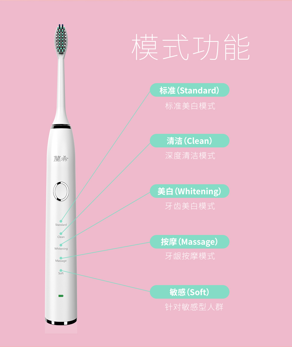 • 产品名称:蘭希 兰希Y9电动牙刷男女成人儿童3D声波震动充电式自动牙刷(带刷头*2)情侣通用款智能一键记忆8级防水Y9