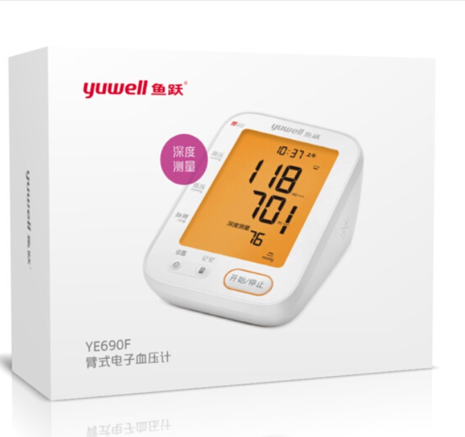 • 产品名称:鱼跃(YUWELL)电子血压计家用医用智能上臂式YE690F血压仪深度测量语音播报高清背光