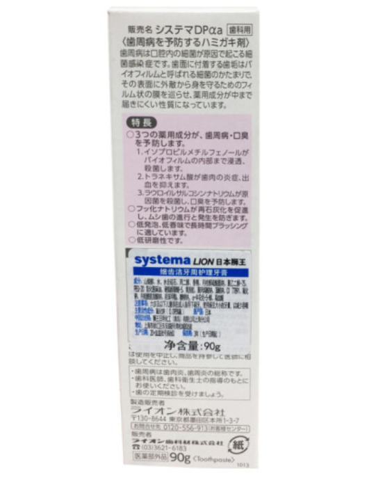 • 产品名称:LION/狮王 SYSTEMA112细齿洁 特效牙周护理牙膏 90g