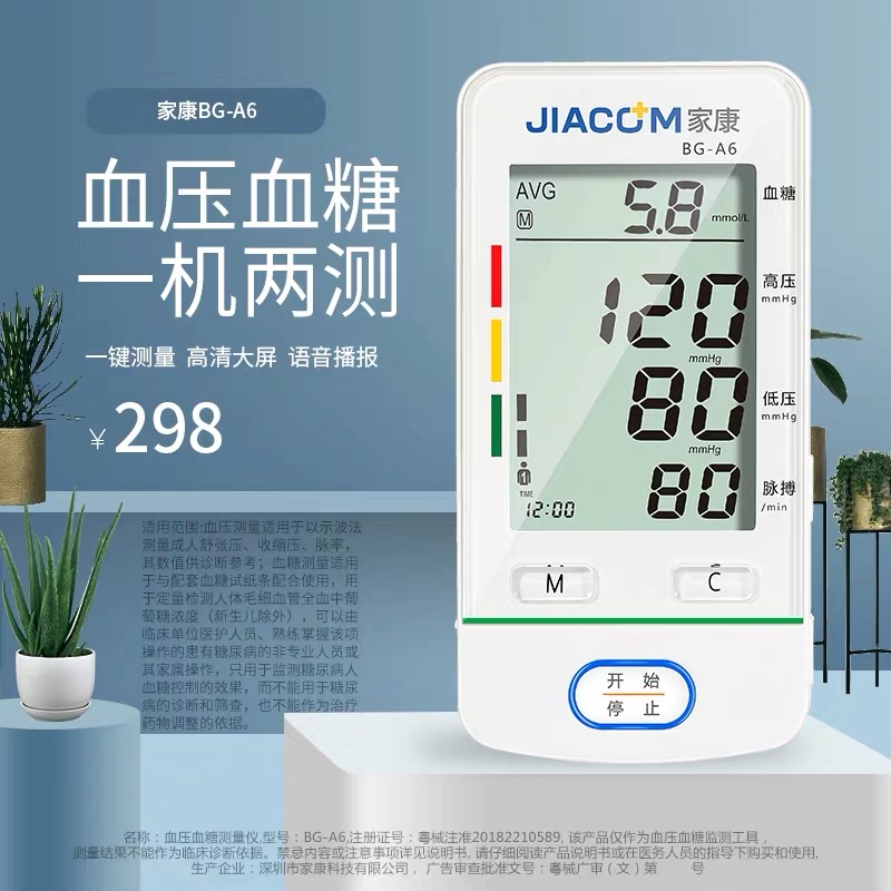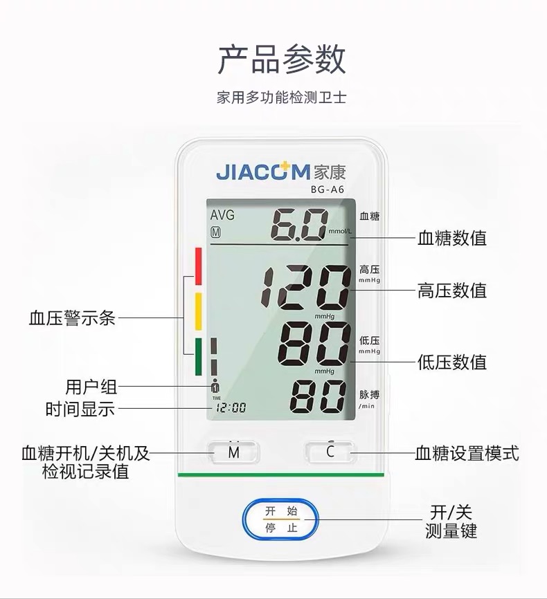 • 产品名称:家康血压血糖一体机测试仪家用精准测血糖的仪器医用测量糖尿病血糖仪