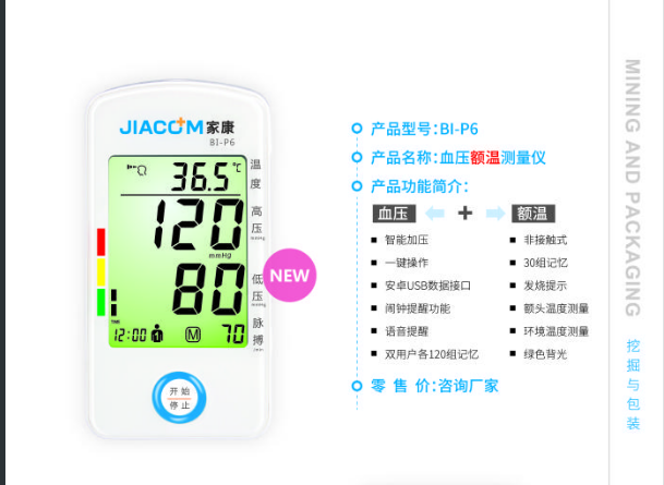 • 产品名称:家康血压额温一体机电子温度体温计儿童婴儿家用高精准医用额温枪