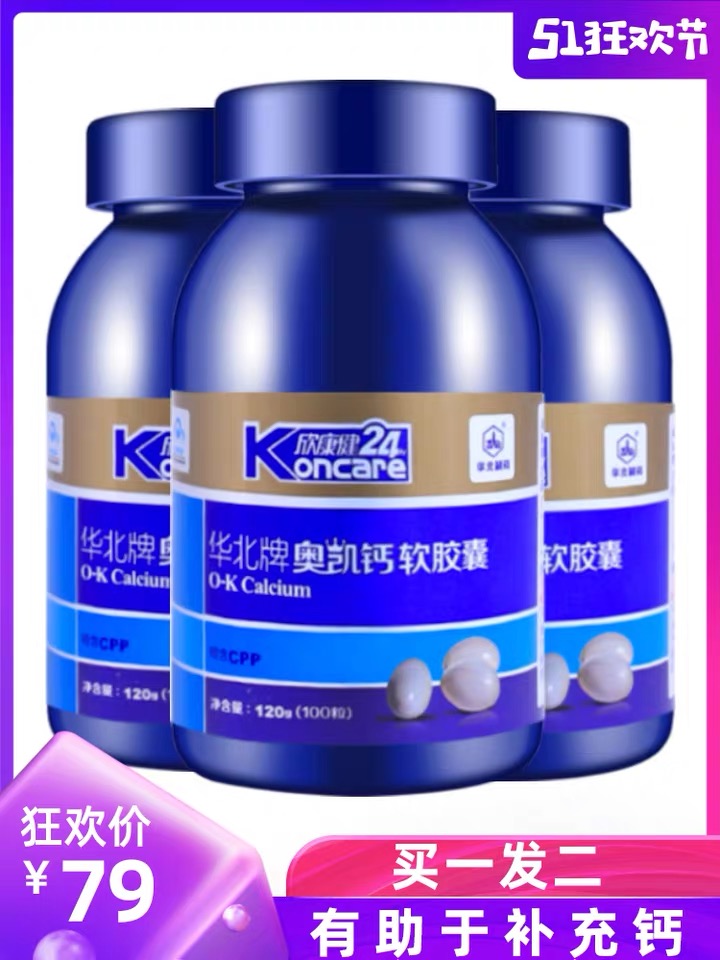 买1送1华北制药奥凯液钙软胶囊中老年成人男女孕妇哺乳高钙包邮买一发二
