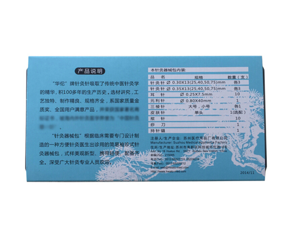 • 产品名称:华佗牌(Hwato)华佗 非一次性镀银针中医用针灸针器械包ZBX-3型(小号)