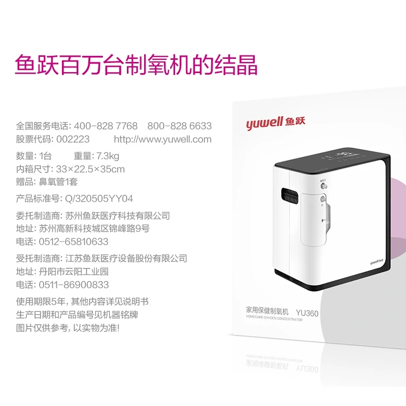 • 产品名称:鱼跃YU360制氧机家用吸氧机老人孕妇小型吸氧机家庭式便携带雾化