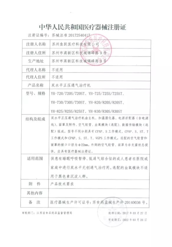 • 产品名称:鱼跃双水平正压通气治疗机 YH820 (优势款)