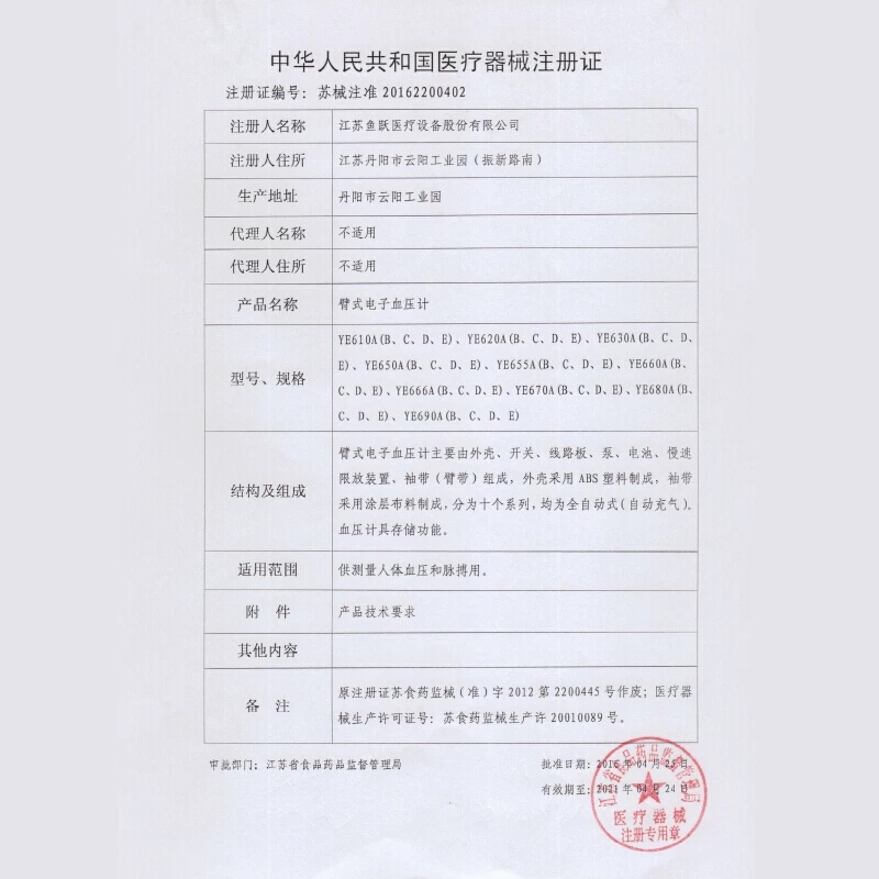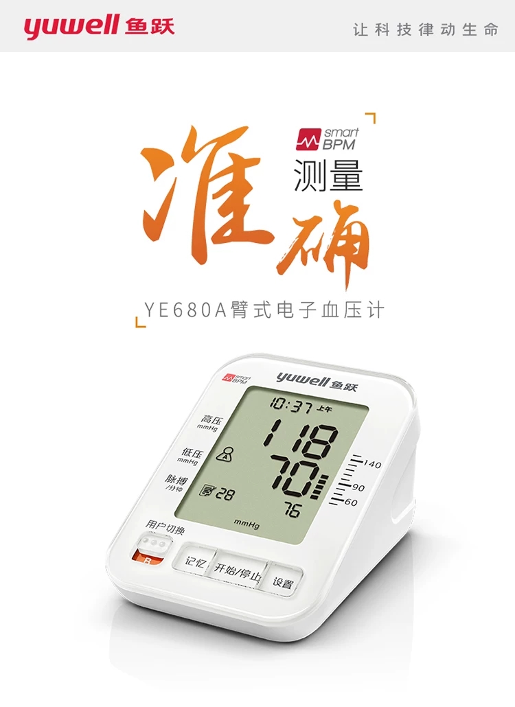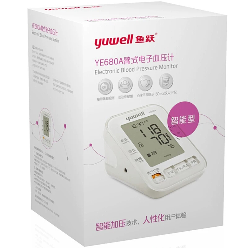 • 产品名称:鱼跃电子血压计YE680A家用臂式支持华为运动健康蓝牙版
