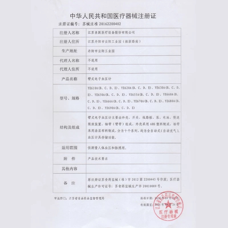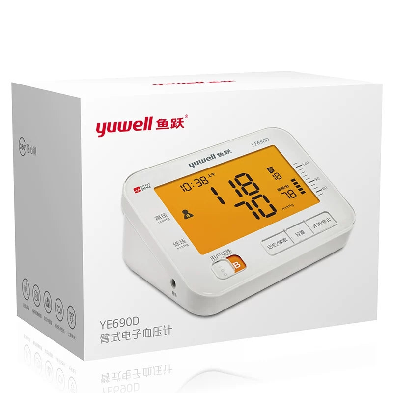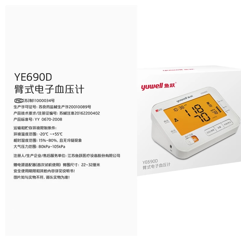 • 产品名称:鱼跃家用电子血压计YE690D全自动家庭血压测量仪测量血压老人