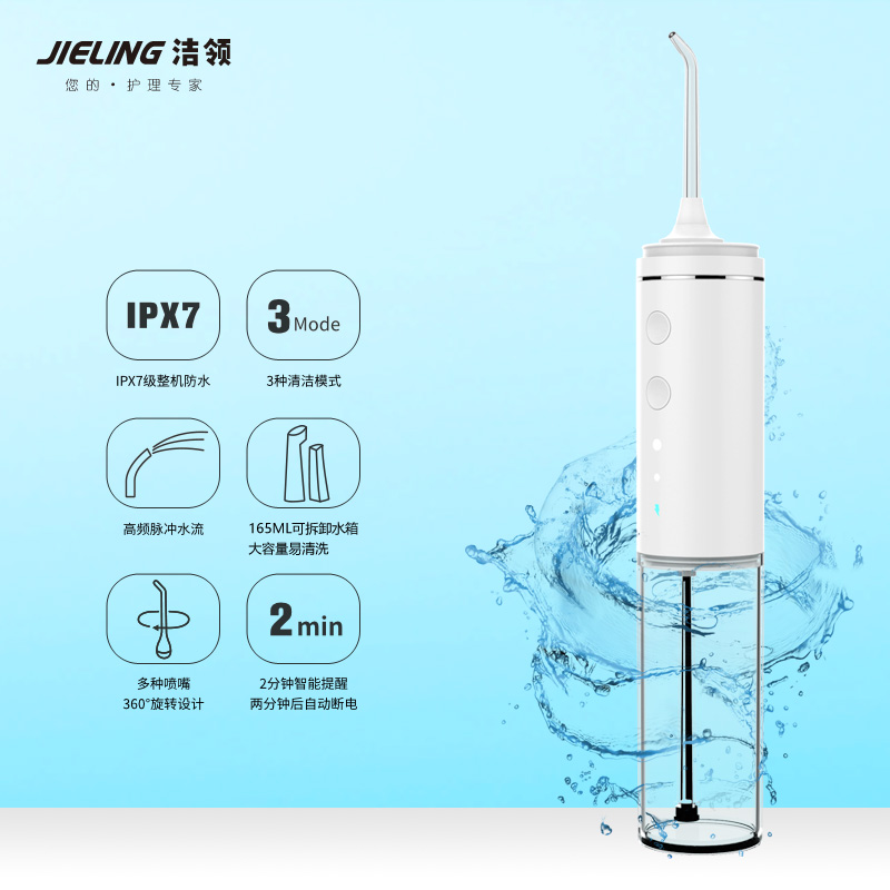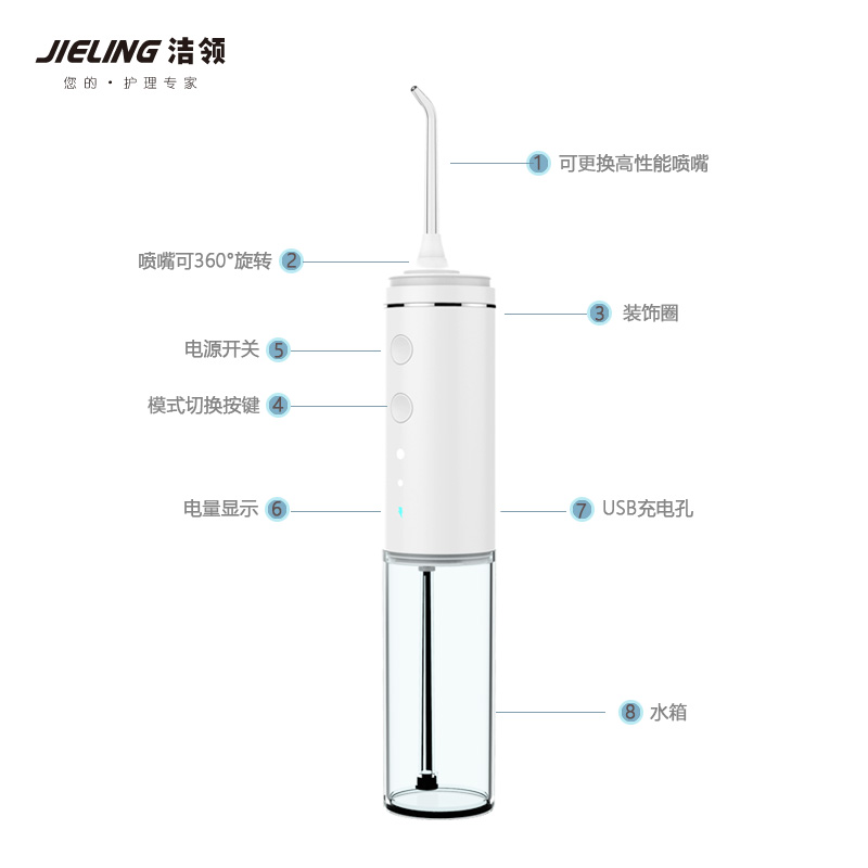 • 产品名称:洁领JIELING便携式冲牙器旅行口腔清洁超声波洁旅USB水牙线洗牙器