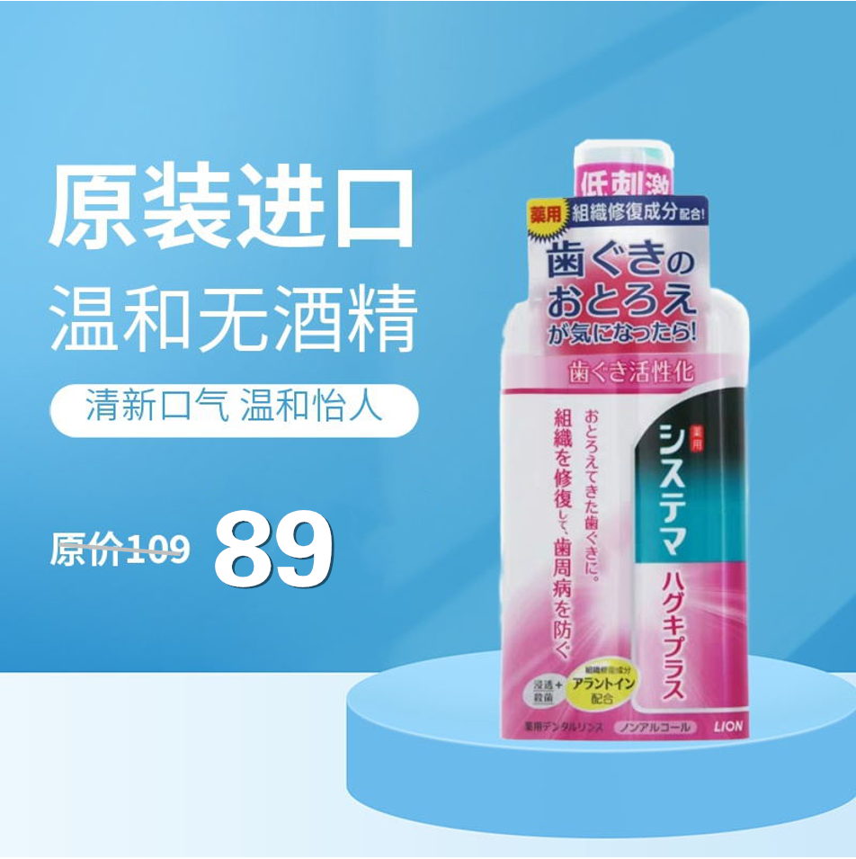 日本狮王漱口水450ml无酒精牙龈牙周炎清洁牙垢牙菌斑 lion漱口水