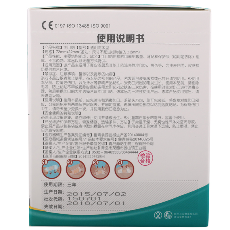 • 产品名称:海氏海诺 透明防水创可贴5片x20袋共100片创口贴防水透明止血贴伤口贴