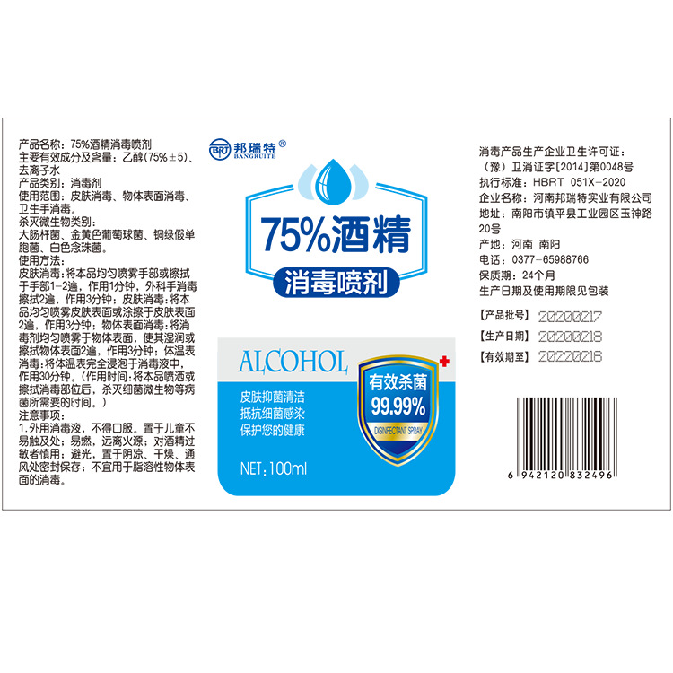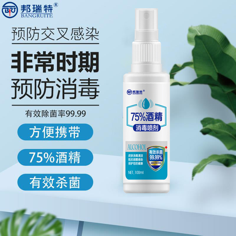 • 产品名称:消毒免洗速干100ml喷雾75%酒精含量医用杀抗菌消毒液