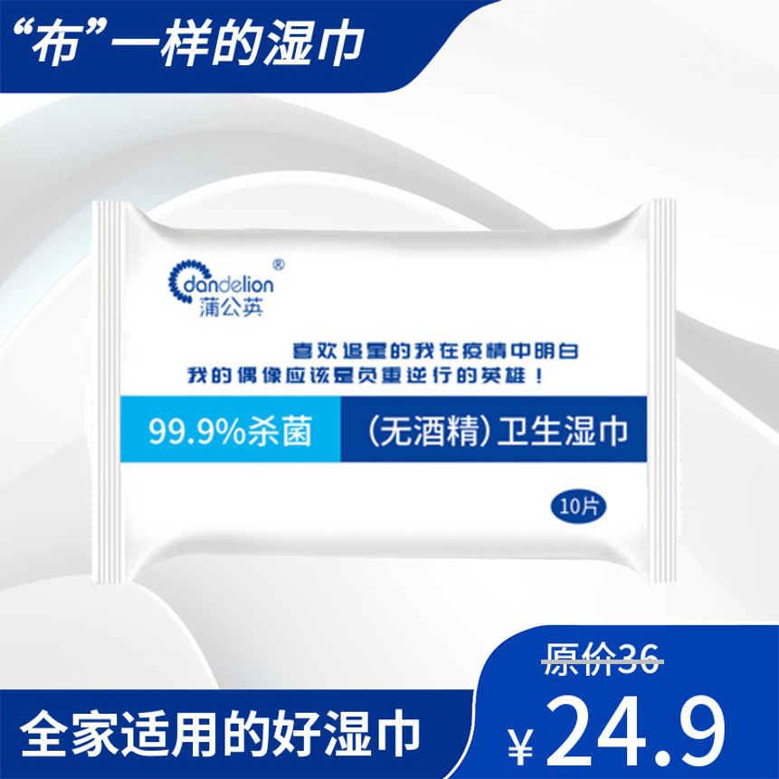 蒲公英99.9%杀菌消毒湿巾 无酒精婴儿用消毒湿巾10抽