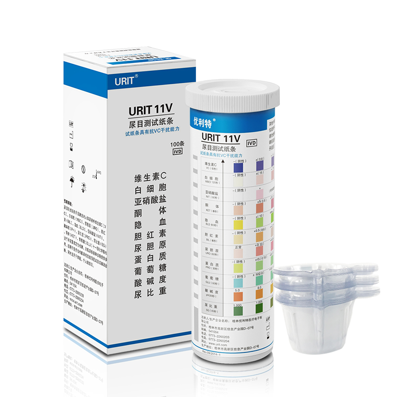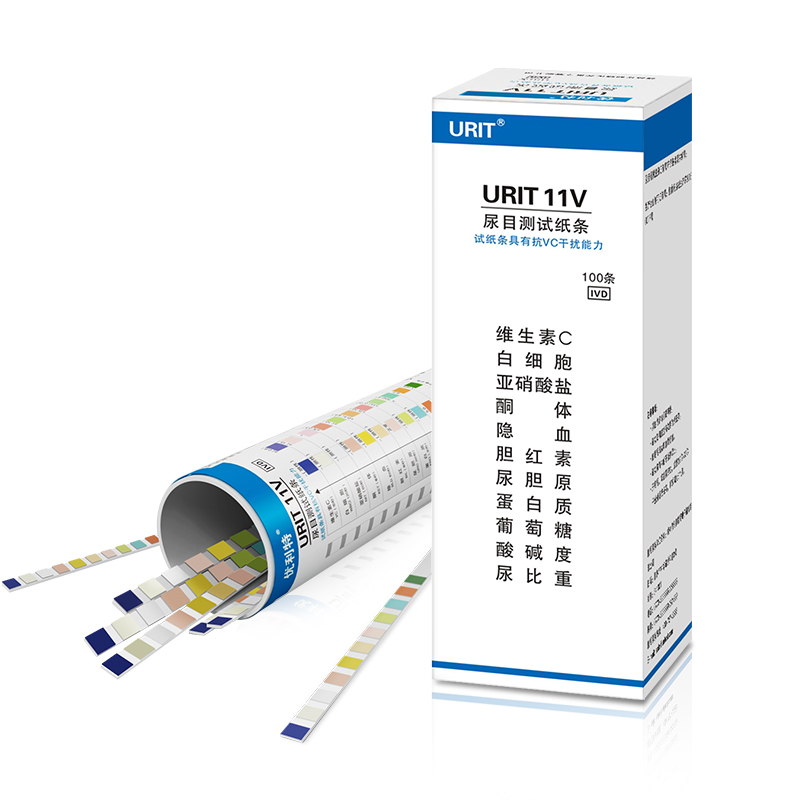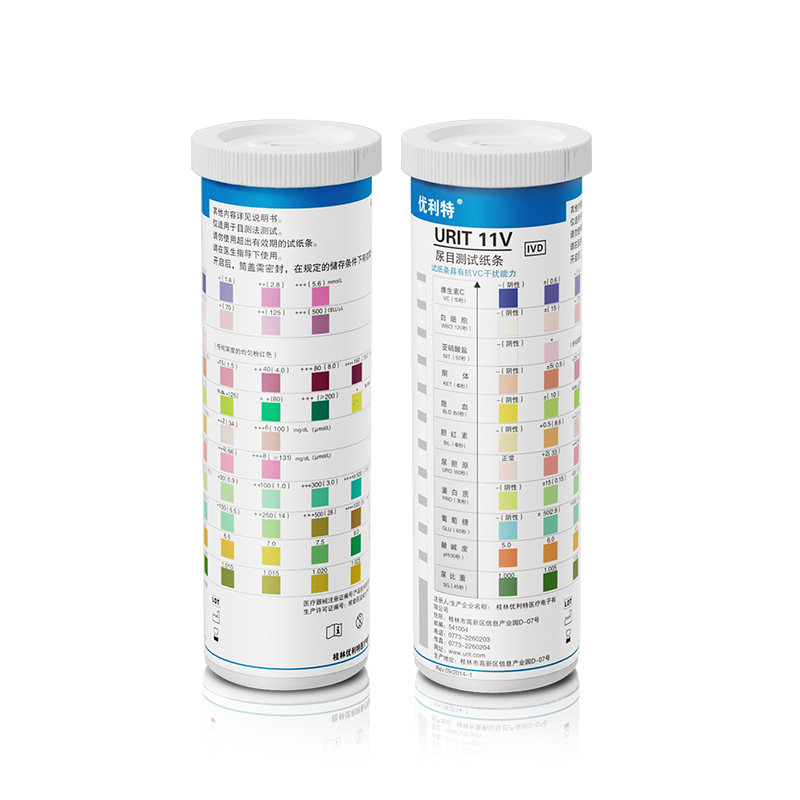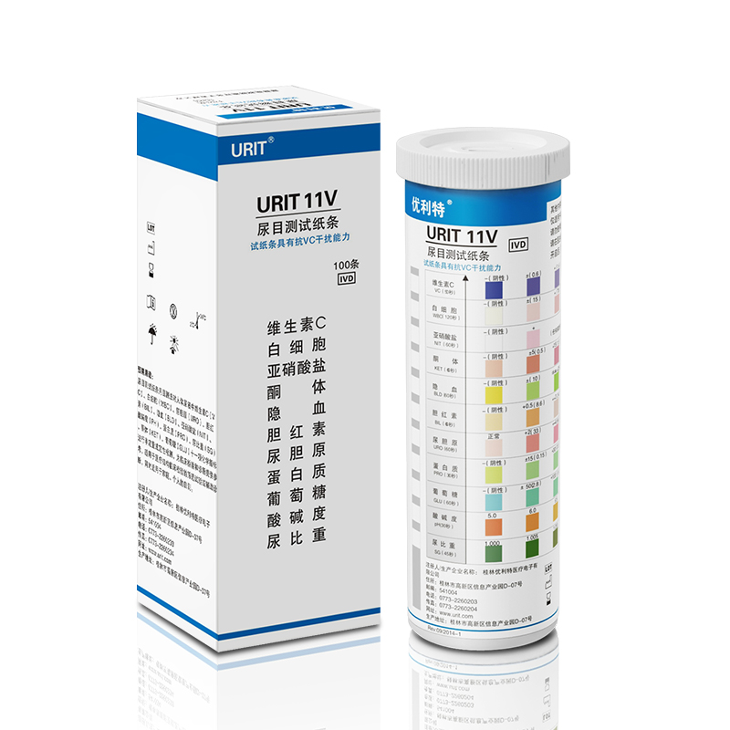 • 产品名称:优利特11项尿十一联目测试纸11V尿常规试纸尿比重白细胞尿蛋白酮体