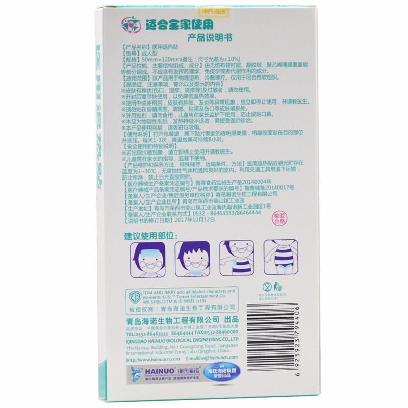 • 产品名称:海氏海诺 医用退热贴 50mm*120mm*2片 物理退热 冷敷理疗 HR