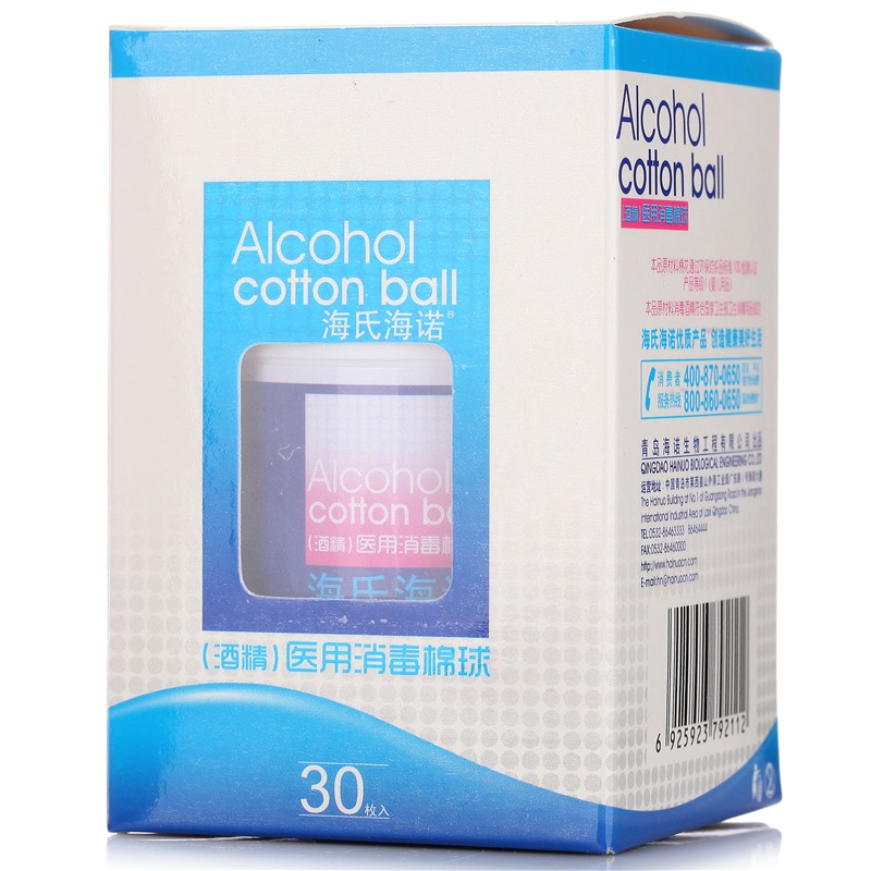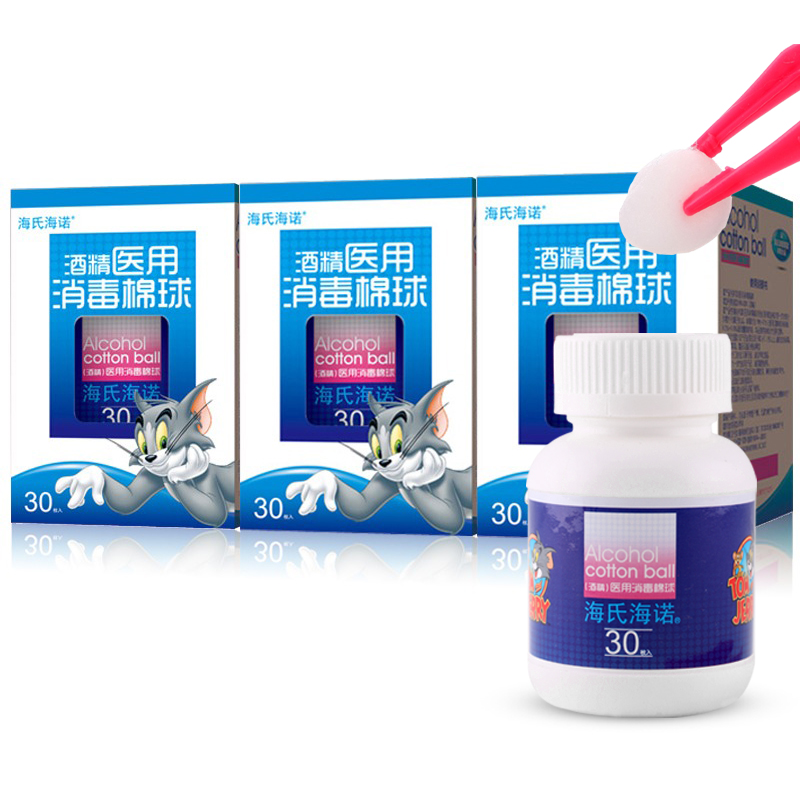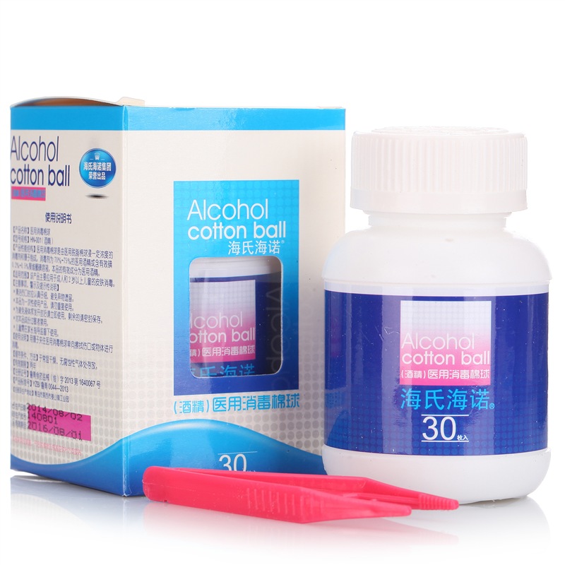 • 产品名称:海氏海诺 医用酒精棉球 消毒棉球 30枚*3盒(每盒内含镊子)