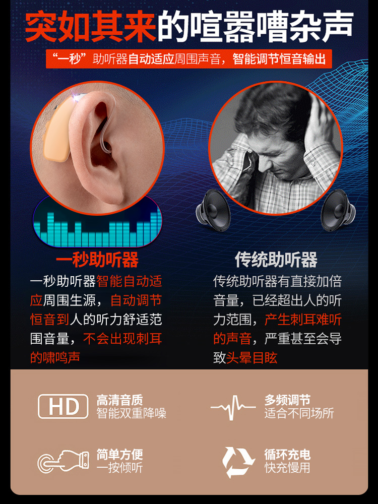 • 产品名称:一秒 助听器老人专用耳聋耳背无线隐形可充电式 音质清晰+双重降噪+免调试