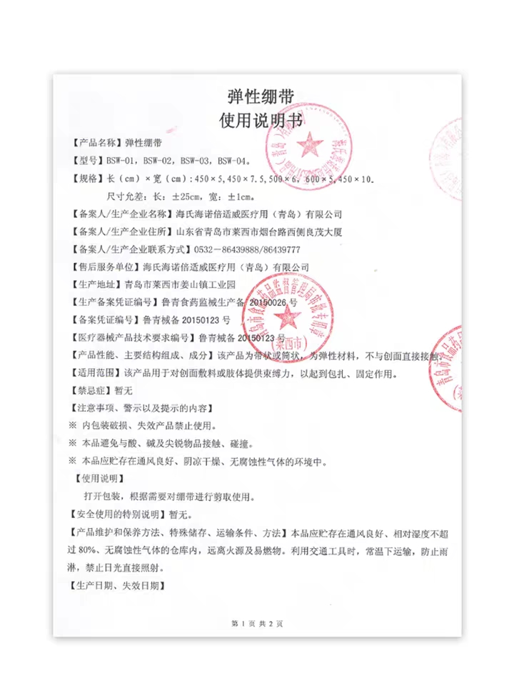 • 产品名称:医用自粘绷带海氏海诺医用弹性绷带