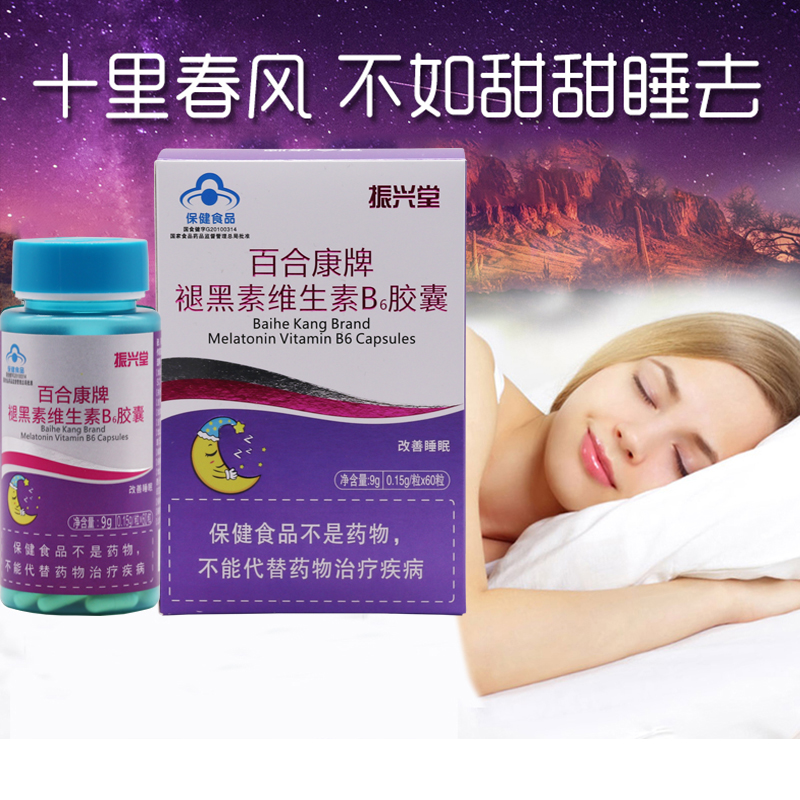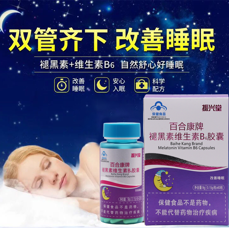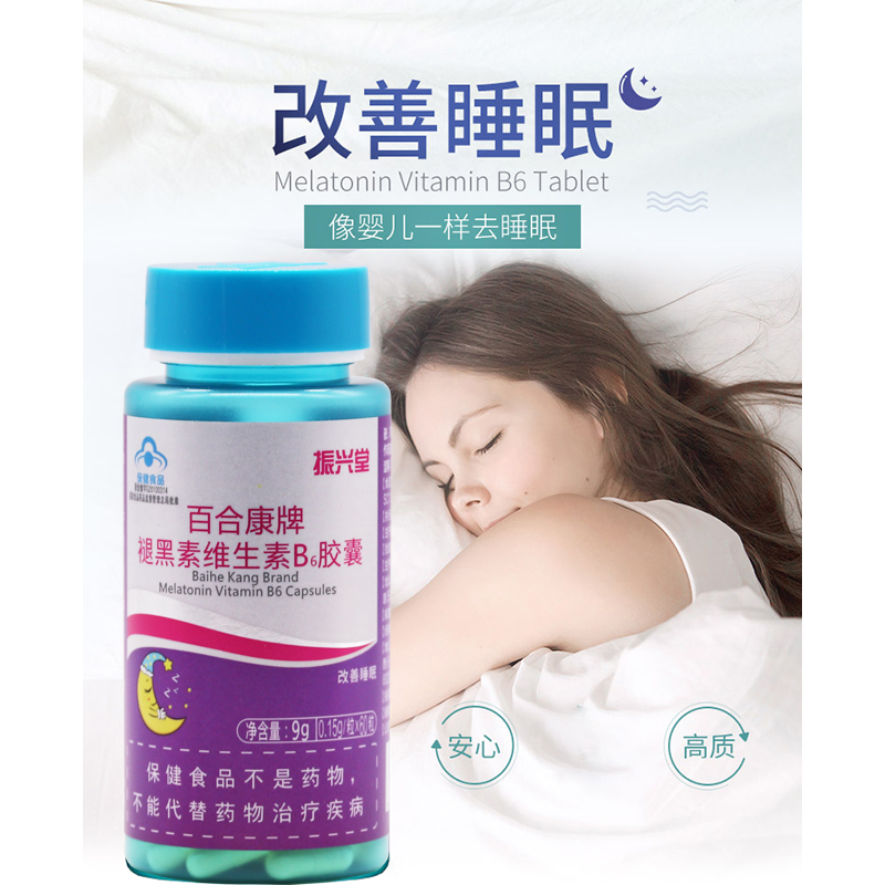 • 产品名称:振兴堂 百合康牌褪黑素维生素B6胶囊成人中老年改善睡眠失眠非安眠退黑素片