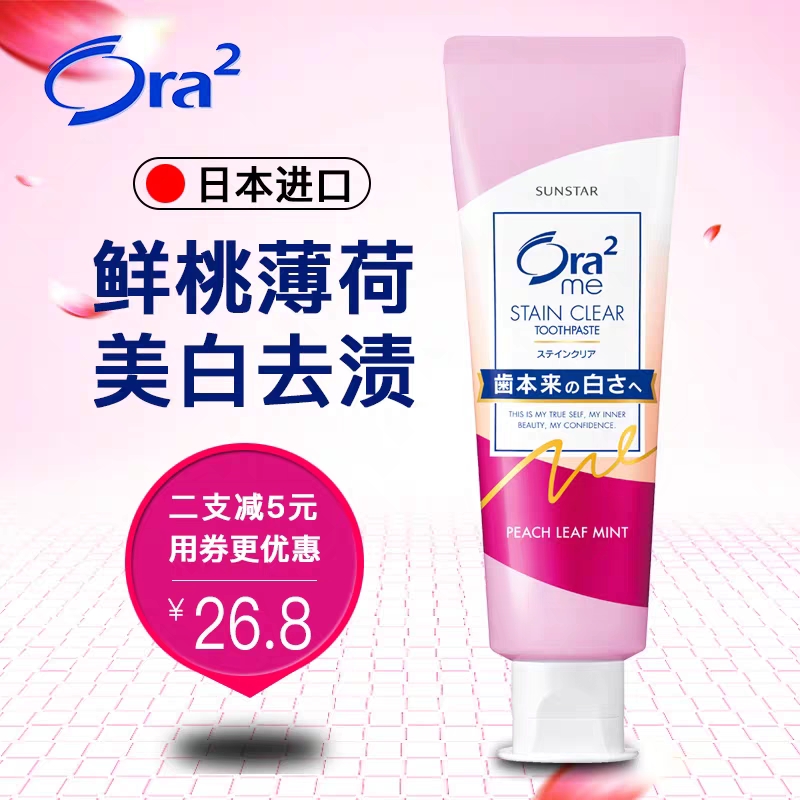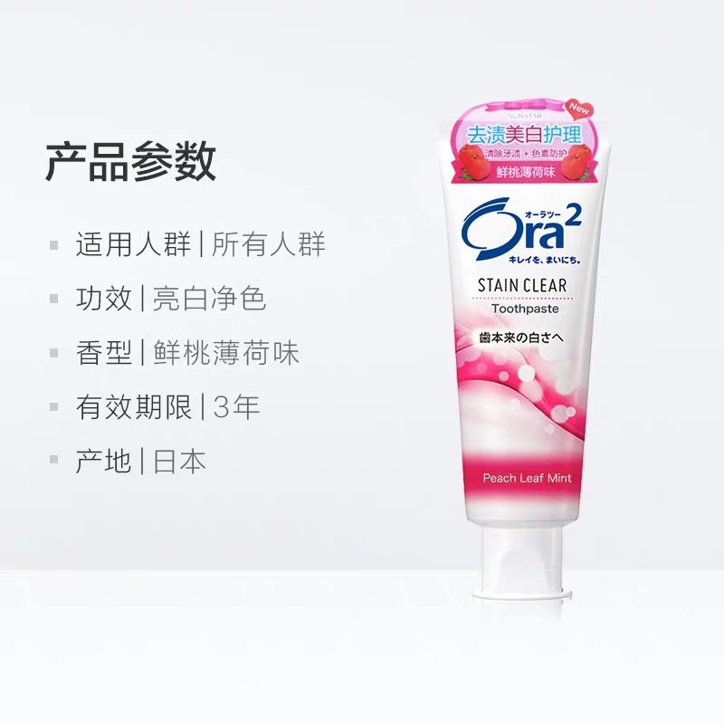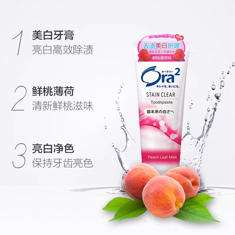 • 产品名称:日本进口ora2皓乐齿亮白净色牙膏鲜桃薄荷味140g牙膏去黄牙垢亮白