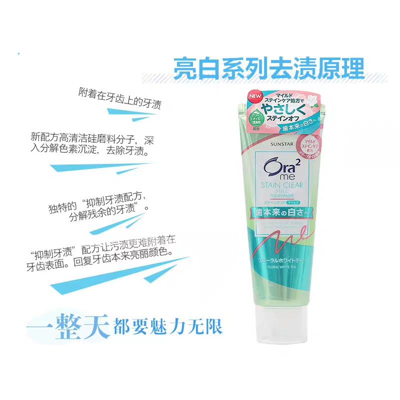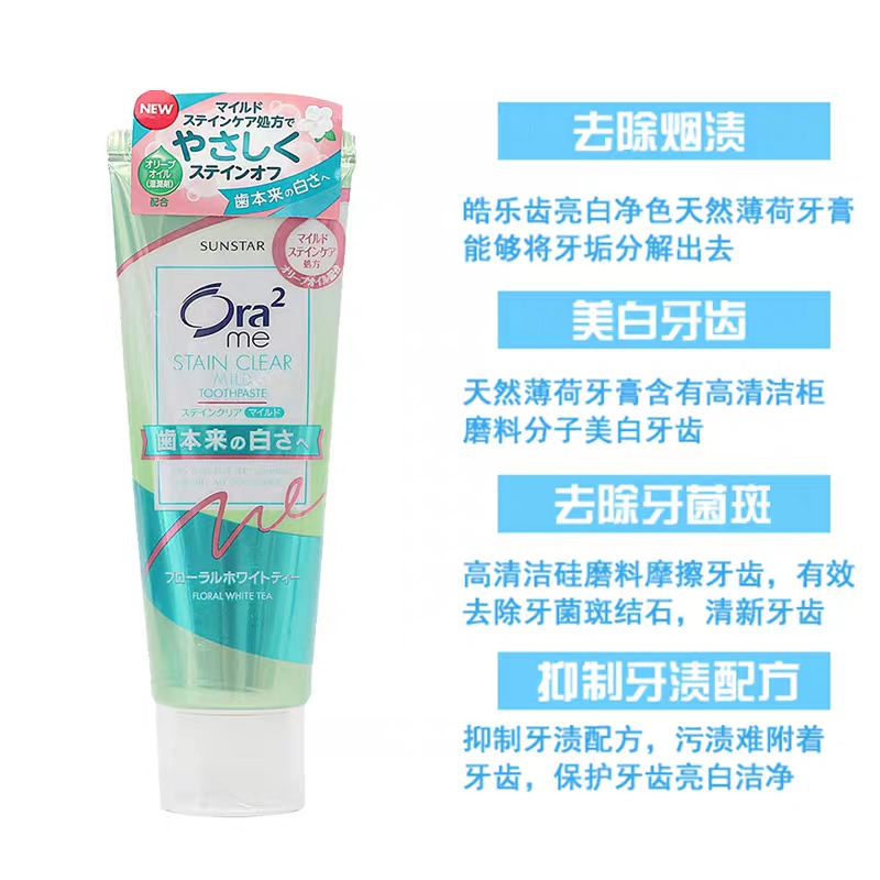 • 产品名称:日本进口ora2皓乐齿牙膏去黄亮白去口臭茉莉花茶香味美白清新口气