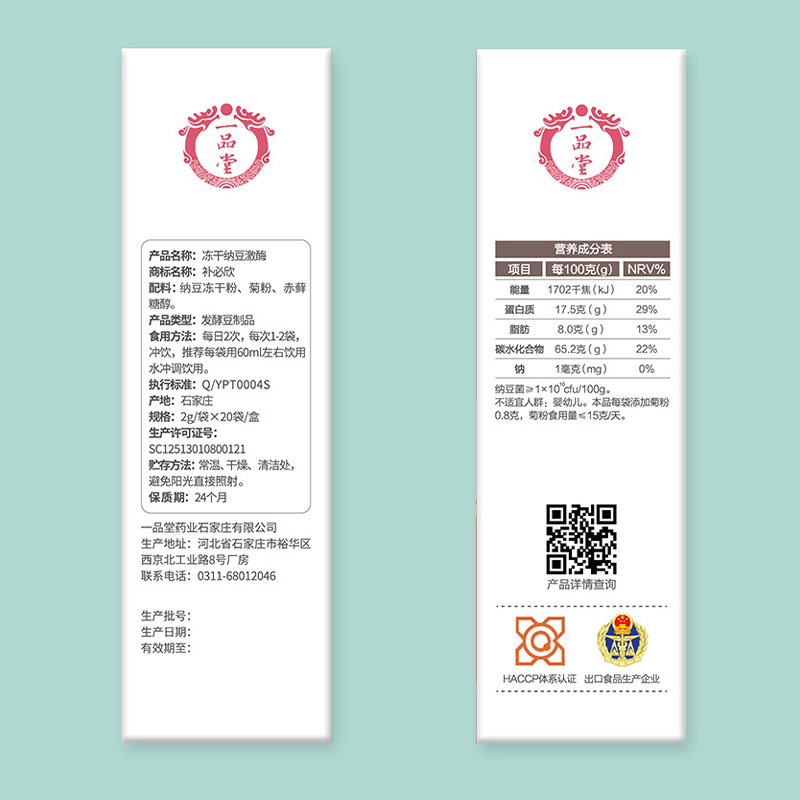• 产品名称:一品堂补必欣冻干纳豆激酶