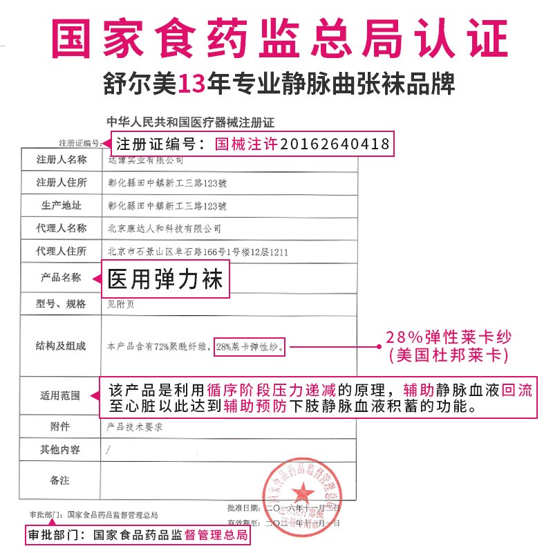 • 产品名称:舒尔美静脉曲张袜一级压力治疗型医用压力袜抗血栓袜连裤袜(包趾肤色)