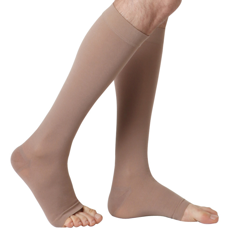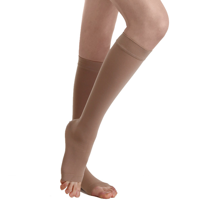 舒尔美静脉曲张袜三级压力治疗型医用压力袜抗血栓袜中筒袜 露趾深肤色