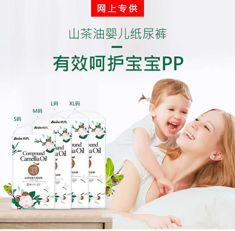 • 产品名称:蓓秀山茶油婴儿纸尿裤L超薄透气宝宝尿不湿新生儿尿裤夏季防红臀