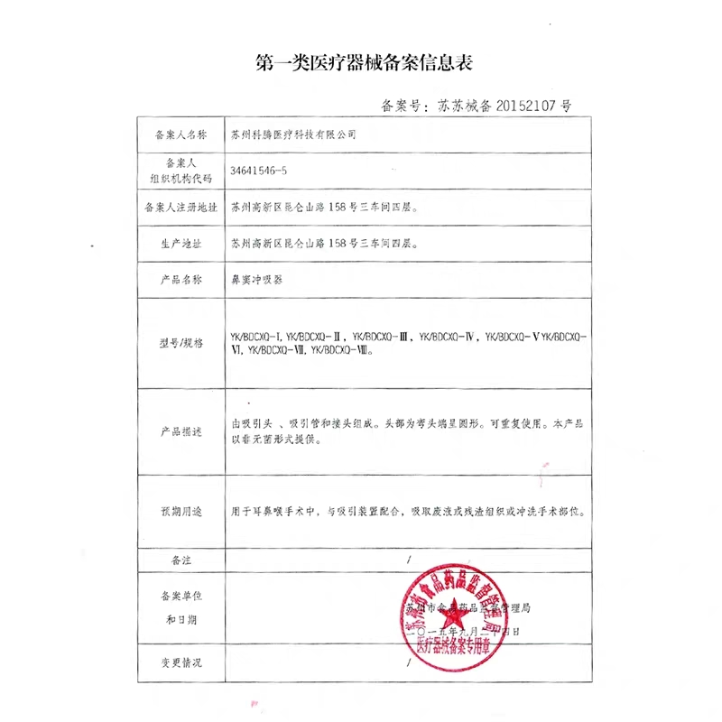 • 产品注册登记证书号:无