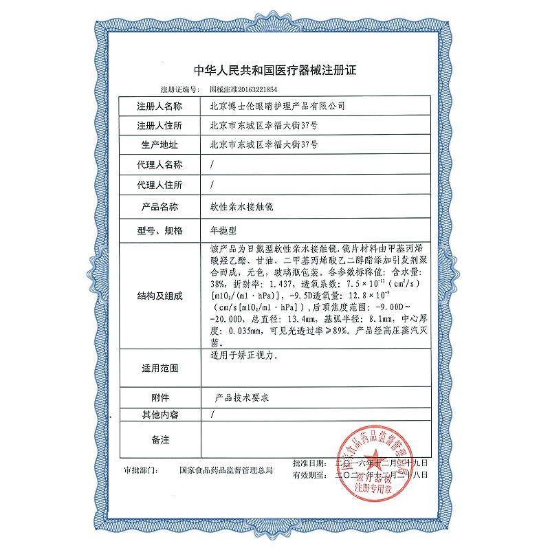 • 产品名称:博士伦隐形眼镜 舒视能国产年抛1片装 男女透明近视隐形眼镜轻薄舒适