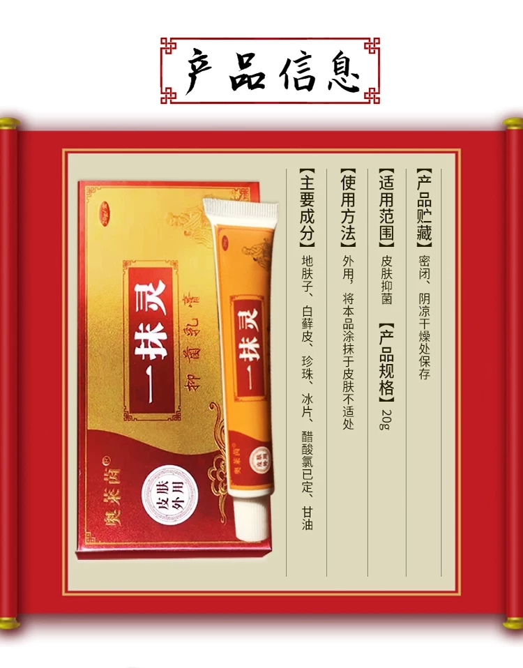 • 产品名称:奥莱茵一抹灵抑菌乳膏