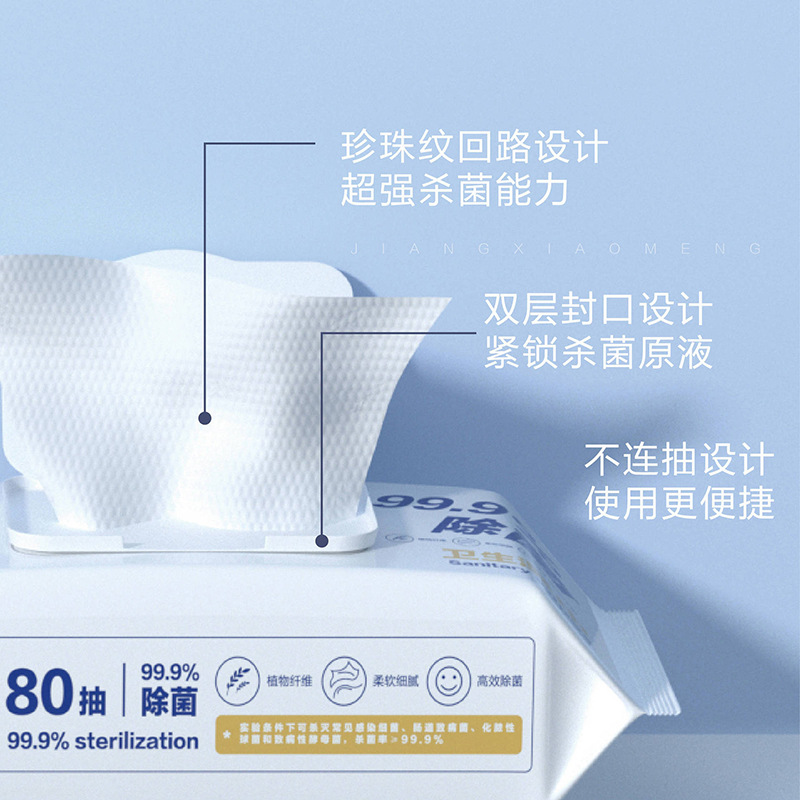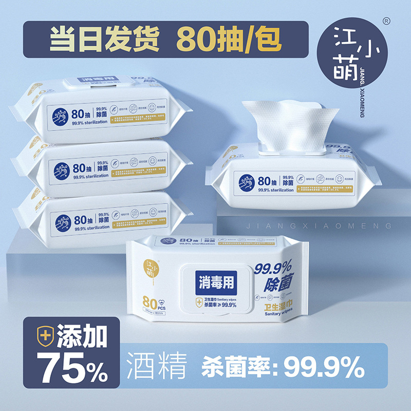 • 产品名称:江小萌80抽75%酒精婴儿消毒湿巾99.9%除菌防疫学生开学必备